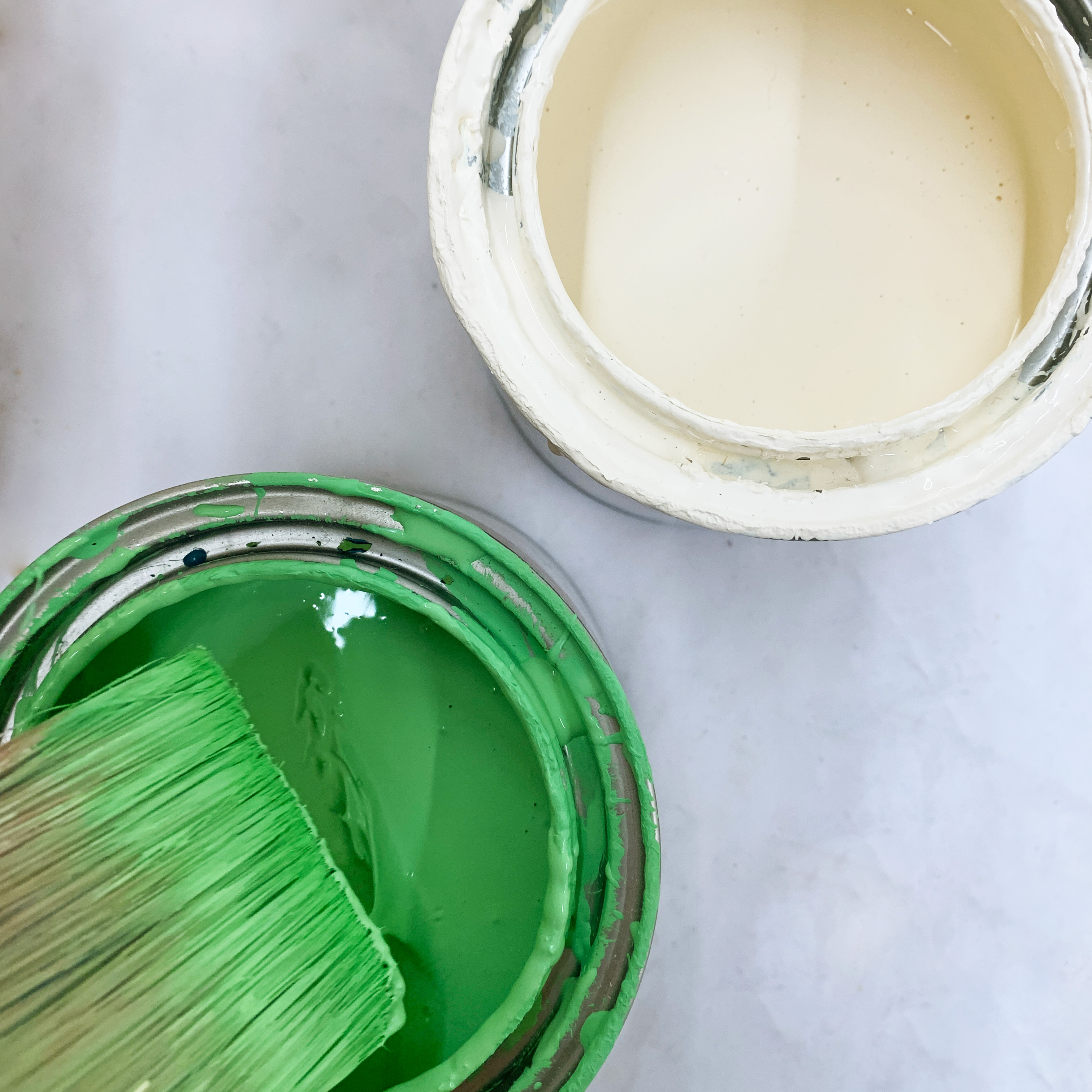 When choosing paint colors for this project, I wanted to create the feeling of play as well as sophistication. The more vibrant green evokes a feeling of nature and promotes a fresh and inspired atmosphere. The cream color provides an element of calm and focus as the user approaches the desk for a balanced day of work and relaxation.