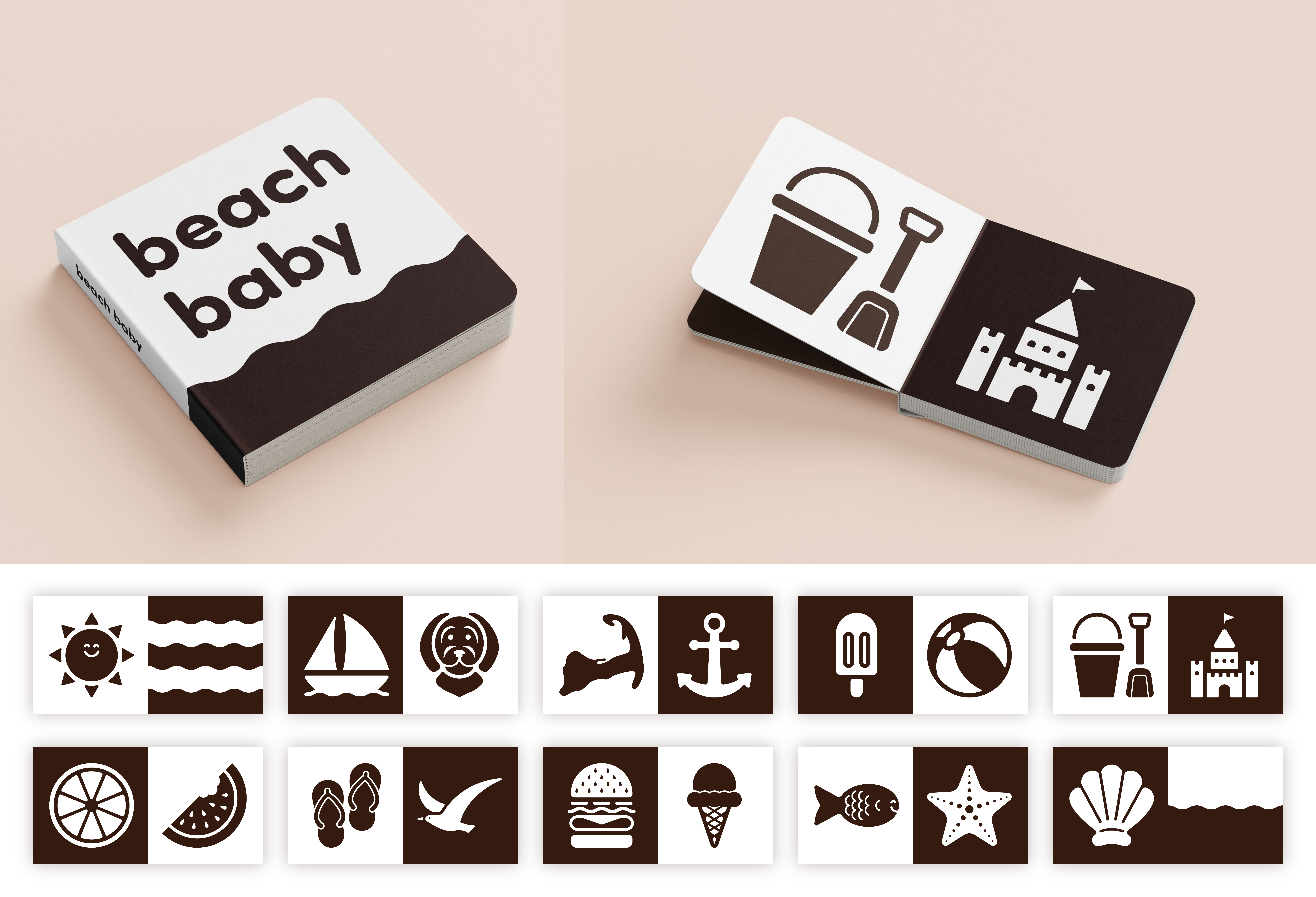 Beach Baby – High Contrast Newborn Book, 2025, Illustrated in Illustrator